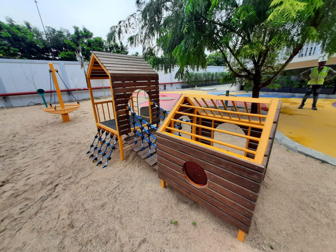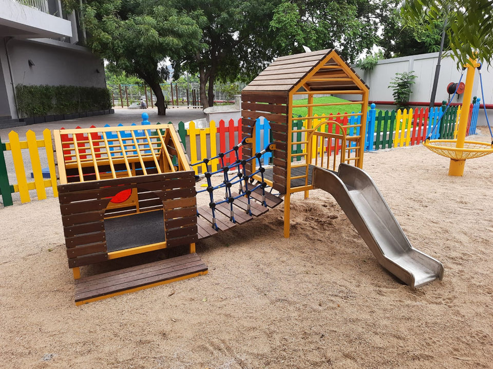 Adani Shantigram is a premier school based in Ahmedabad. Gudgudee helped them create a play area for their pre primary and primary wings. The play areas created use minimal colours and a combination of wood and metal.